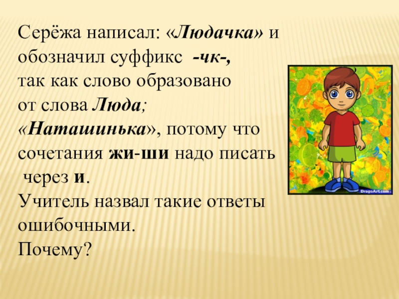 Суффикс стоит после корня.