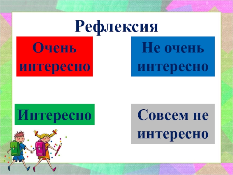 РефлексияОчень интересноНе очень интересноСовсем неинтересноИнтересно