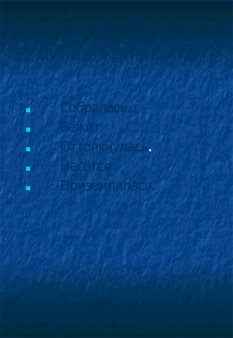 Оттолкнулась. Несётся в воздухе над дорожкой.