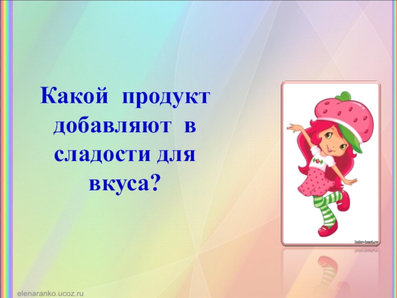 Слайд 1Какой продукт добавляют в сладости для вкуса?