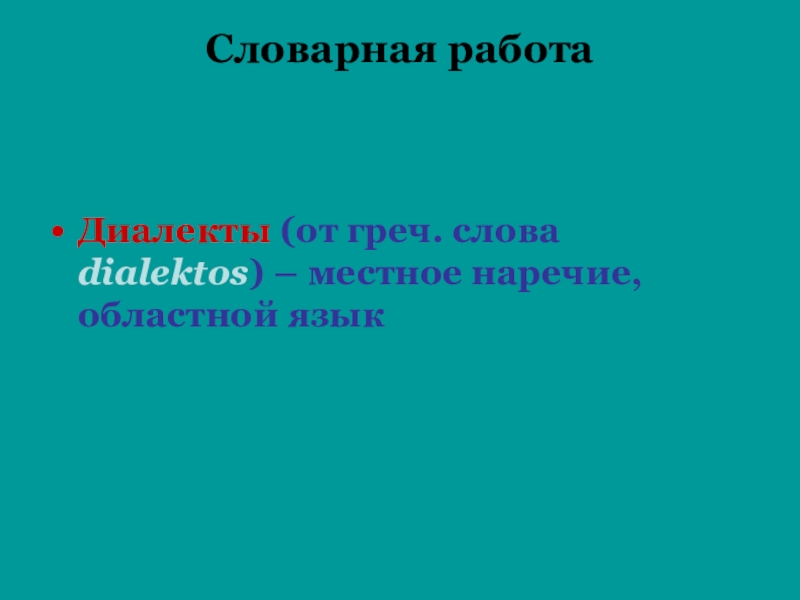 Диалекты (от греч. cлова dialektos) – местное наречие, областной язык