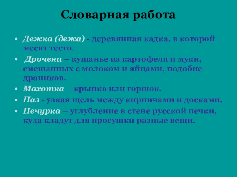 диалектные слова. Пора была сенокосная. Старушка пообещала наговорить слов, если ей помогут убрать сено. Студентки согласились. Во время обеда хозяйка спросила: