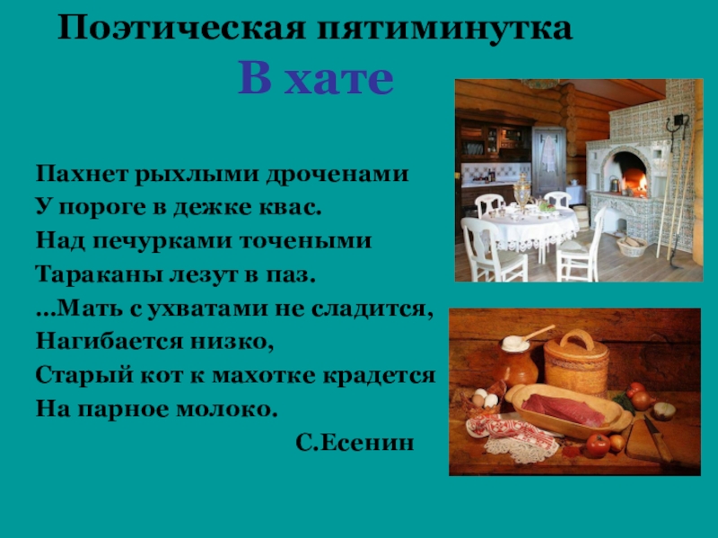 - Танечка, надень плат, возьми ножни и дянки. Надо нарезать стрекавы на суп. Тётя Лида уже ушётце. Она взяла с собой заступ перекопать грядку. Ты иди пока на улицу да посиди в заусолонце. А когда придём с огорода, не забудь выпахать в коридоре, грязи наносили с улицы.