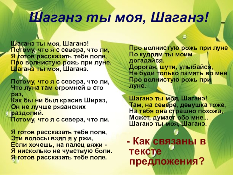 Шаганэ ты моя, Шаганэ!