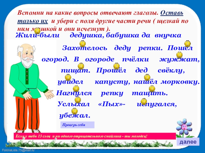 с поля другие части речи ( щелкай по ним мышкой и они исчезнут ).