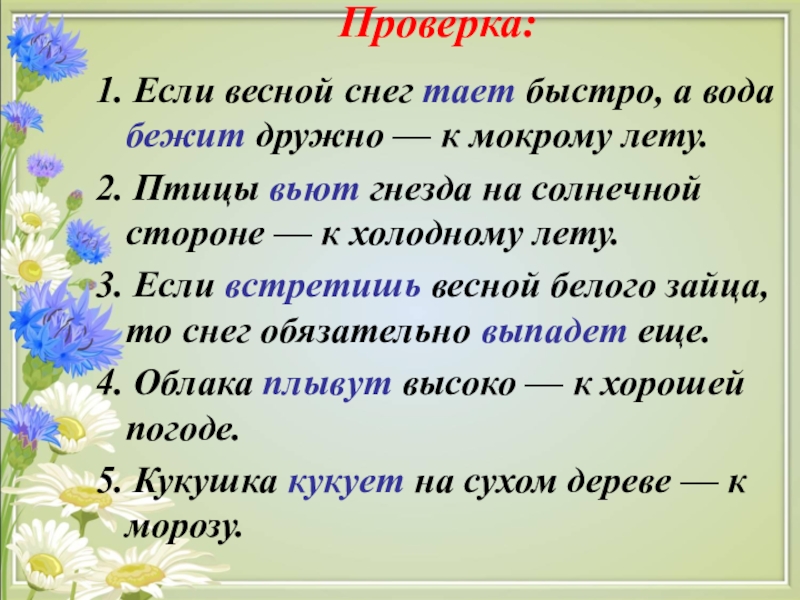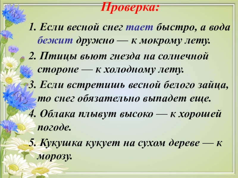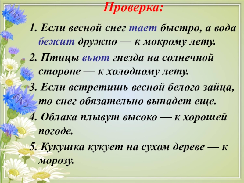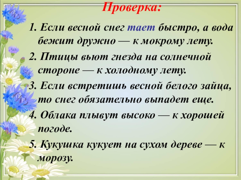 1. Если весной снег тает быстро, а вода бежит дружно —