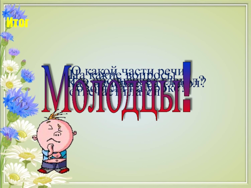Вспомни на какие вопросы отвечают глаголы. Оставь только их и убери