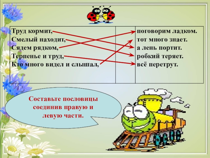 Слайд 28Составьте пословицы соединив правую и левую части.