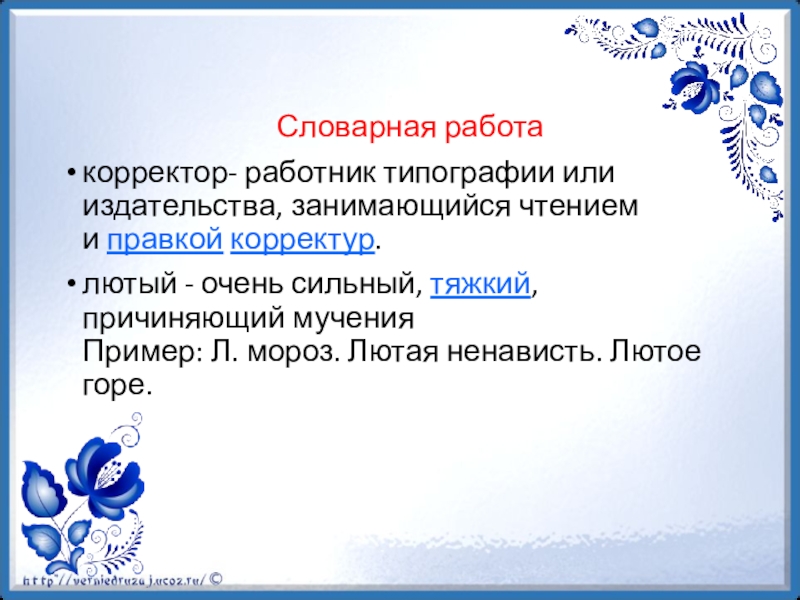 корректор- работник типографии или издательства, занимающийся чтением