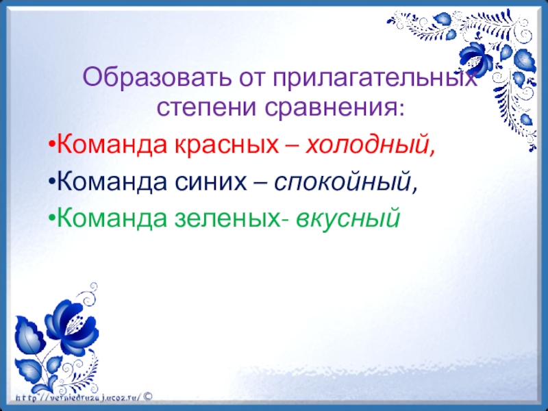 Слайд 26 Образовать от прилагательных степени сравнения: