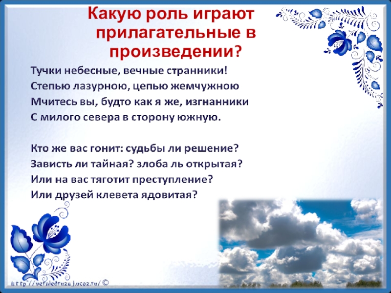 Слайд 29Какую роль играют прилагательные в произведении?