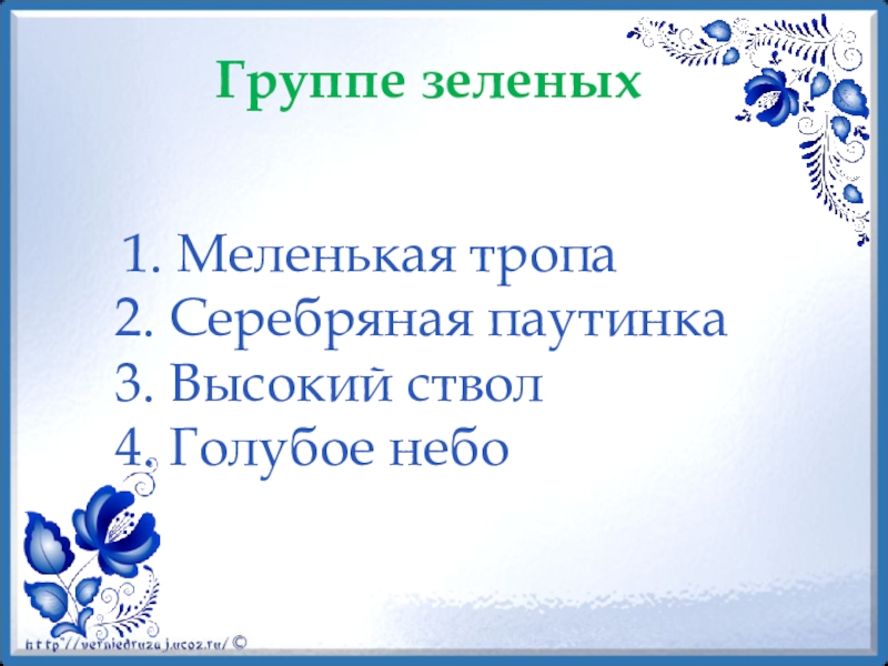 Слайд 7 1. Меленькая тропа