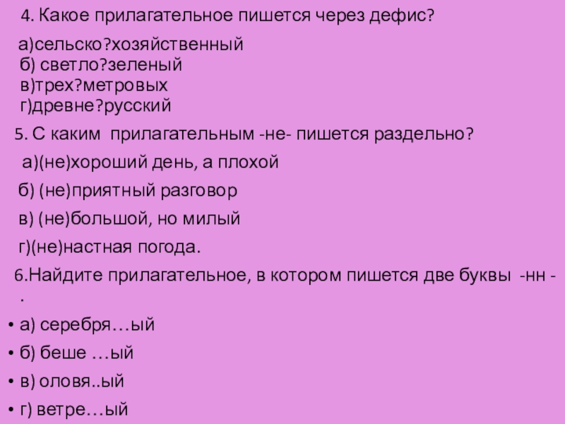 Слайд 32 4. Какое прилагательное пишется через дефис?