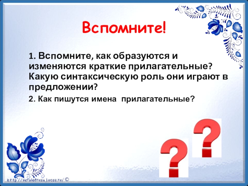 1. Вспомните, как образуются и изменяются краткие прилагательные? Какую синтаксическую роль