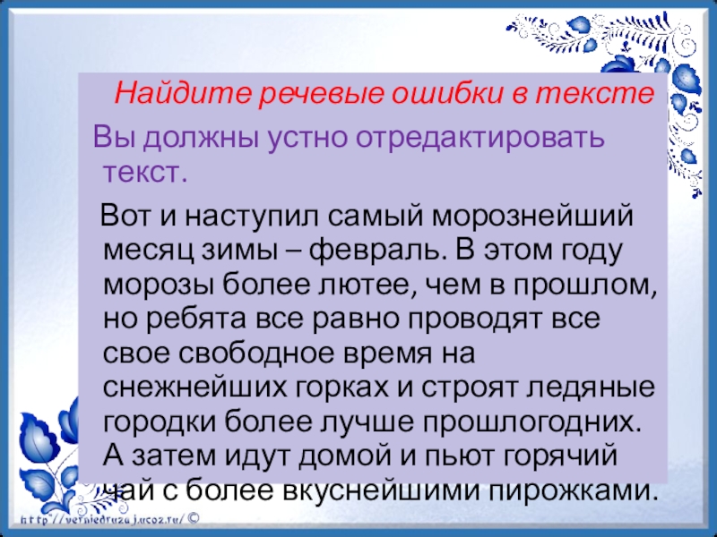 Слайд 25 Найдите речевые ошибки в тексте