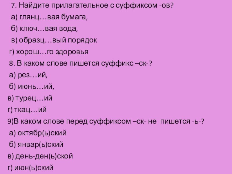 Слайд 33 7. Найдите прилагательное с суффиксом -ов?