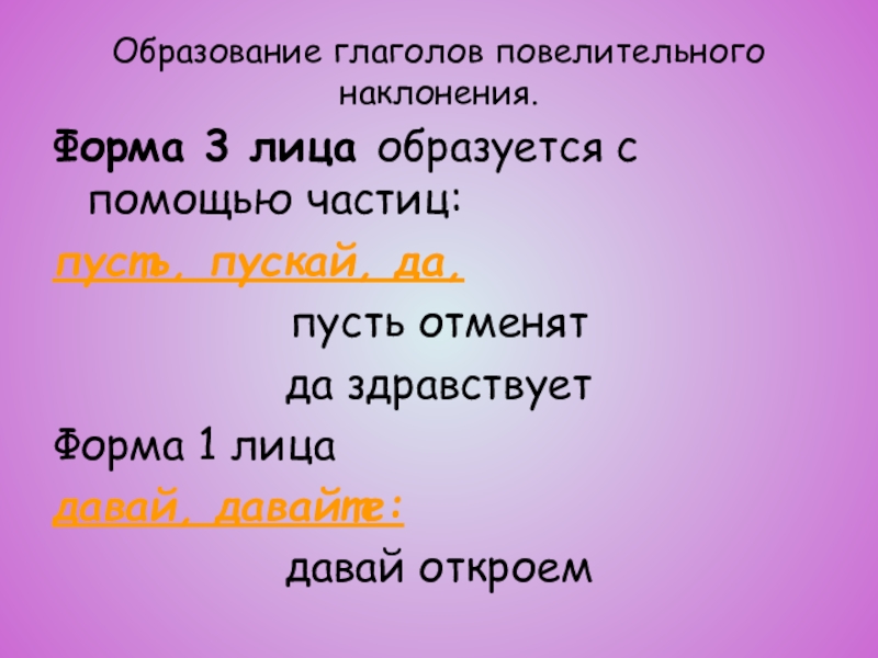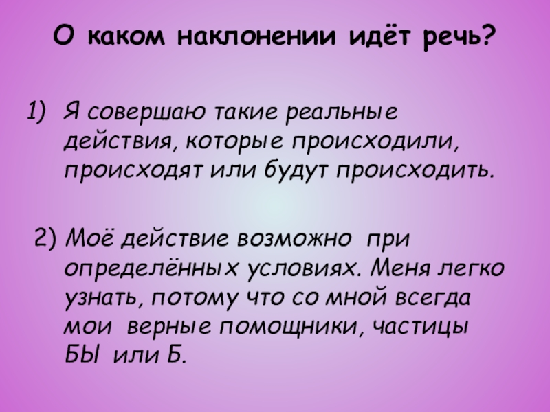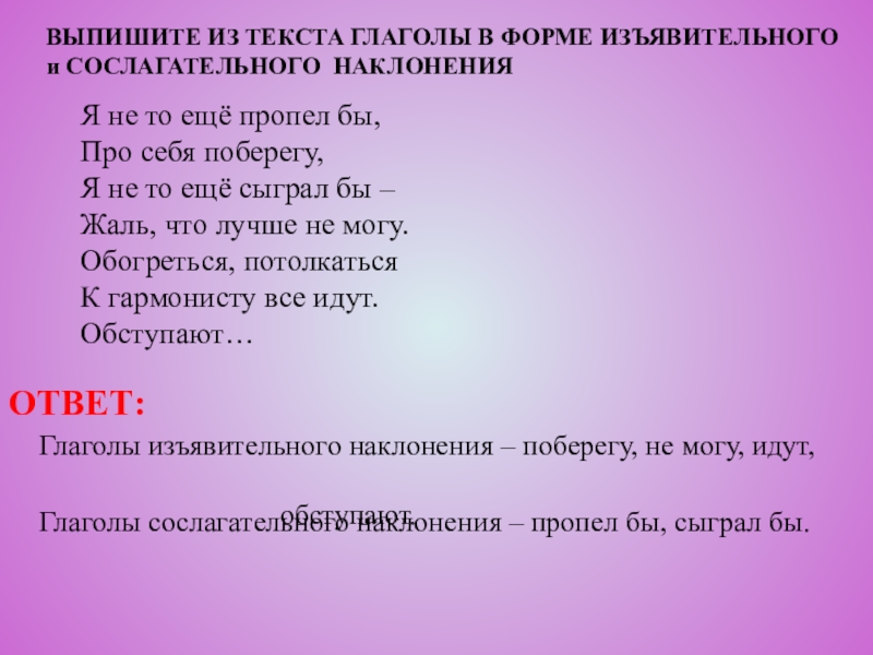 Глаголы сослагательного наклонения – пропел бы, сыграл бы.