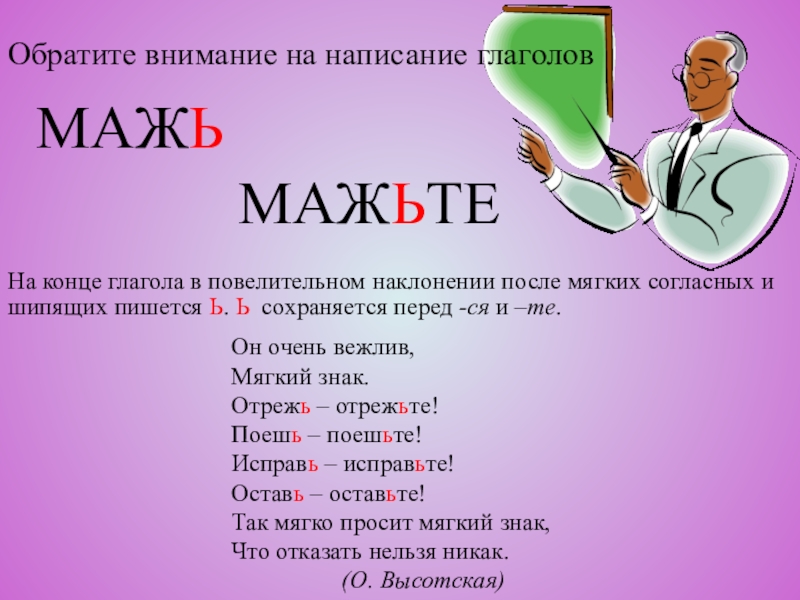 шипящих пишется Ь. Ь сохраняется перед -ся и –те.