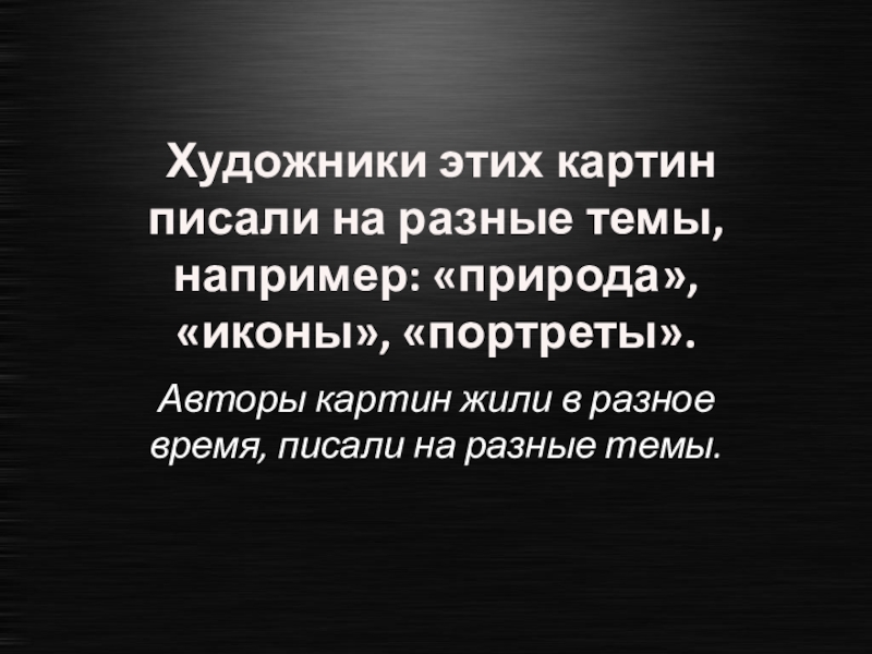 Слайд 44 Художники этих картин писали на разные темы, например: «природа», «иконы»,