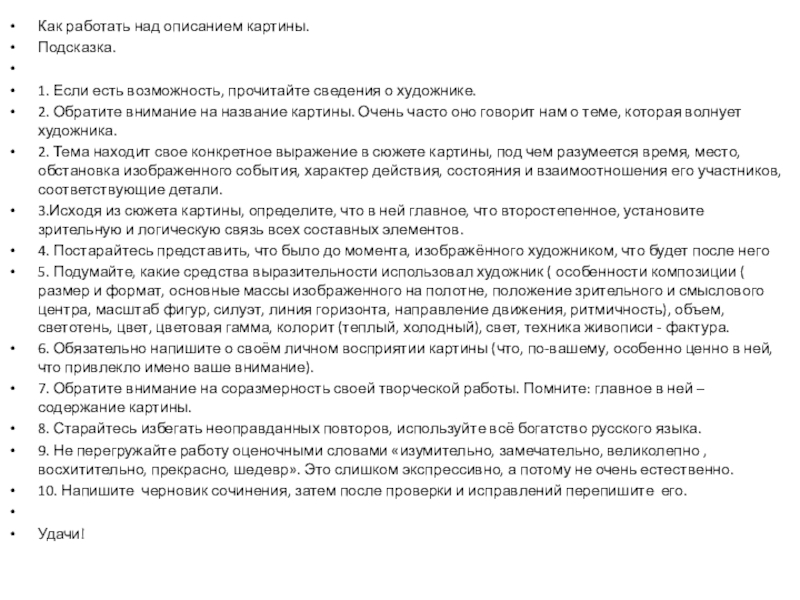 Как работать над описанием картины.