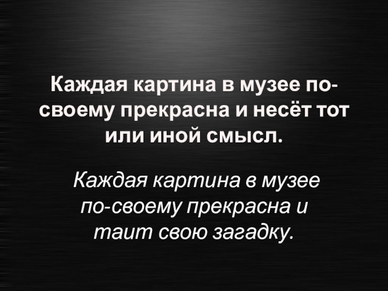 Слайд 59Каждая картина в музее по-своему прекрасна и несёт тот или иной