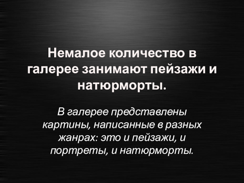 Слайд 40Немалое количество в галерее занимают пейзажи и натюрморты.