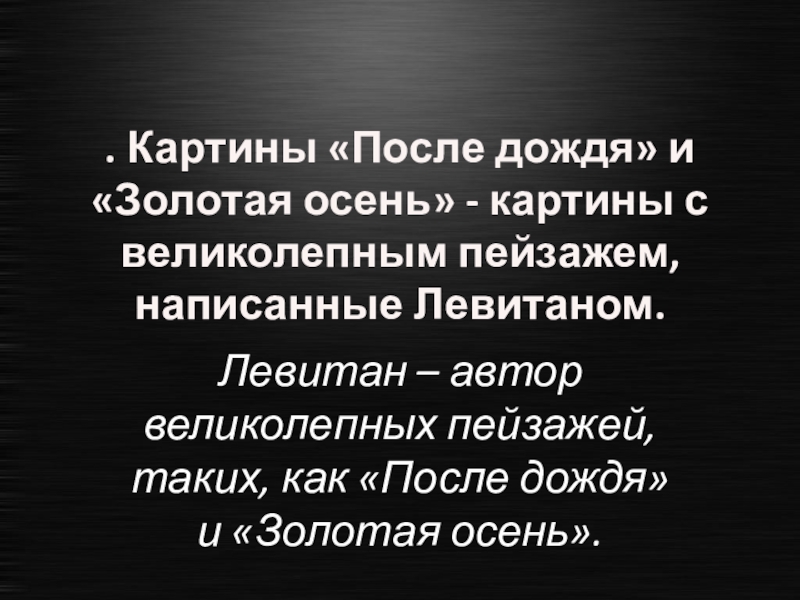 Левитан – автор великолепных пейзажей, таких, как «После дождя» и «Золотая осень».