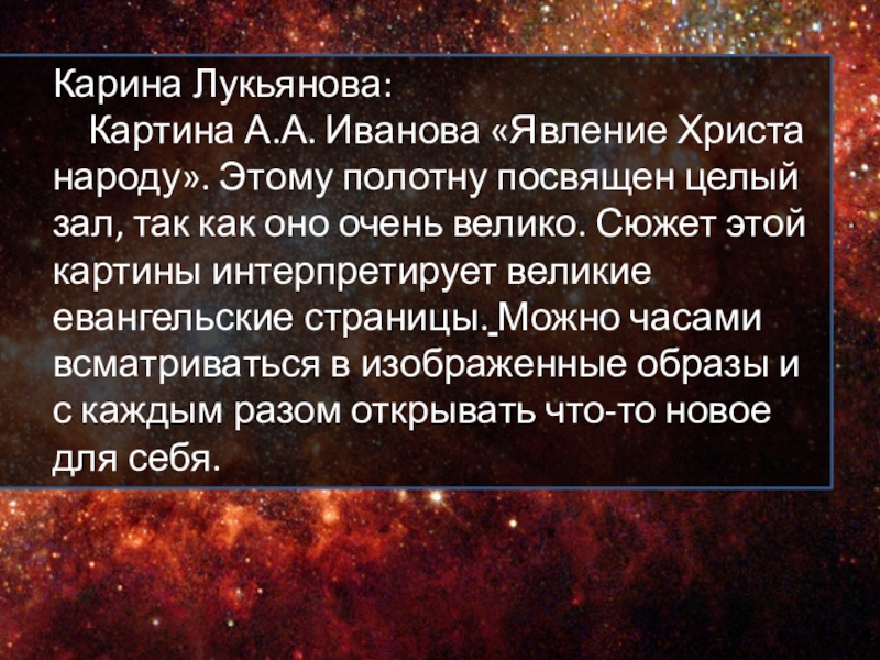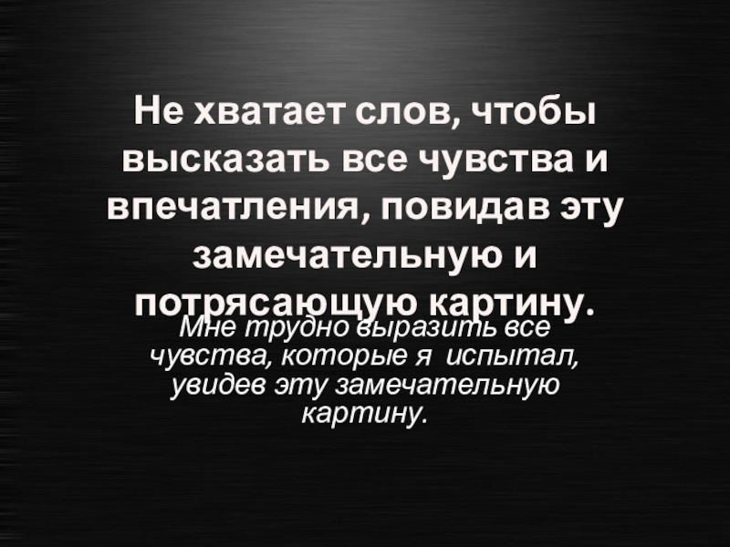 Мне трудно выразить все чувства, которые я испытал, увидев эту замечательную картину.