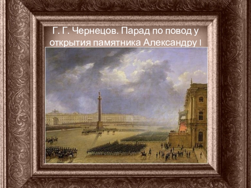 Слайд 19Г. Г. Чернецов. Парад по повод у открытия памятника Александру I