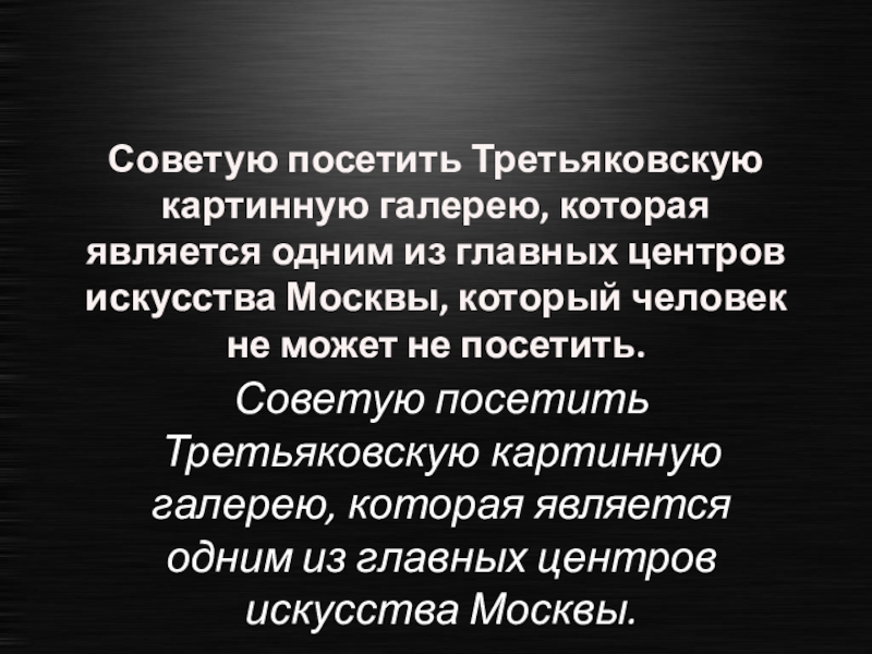 Слайд 58Советую посетить Третьяковскую картинную галерею, которая является одним из главных центров