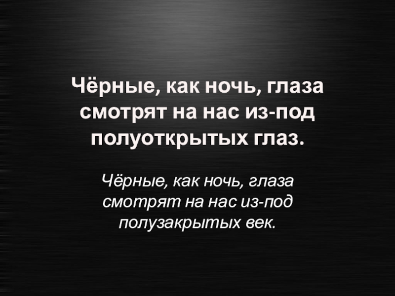 Слайд 53Чёрные, как ночь, глаза смотрят на нас из-под полуоткрытых глаз.