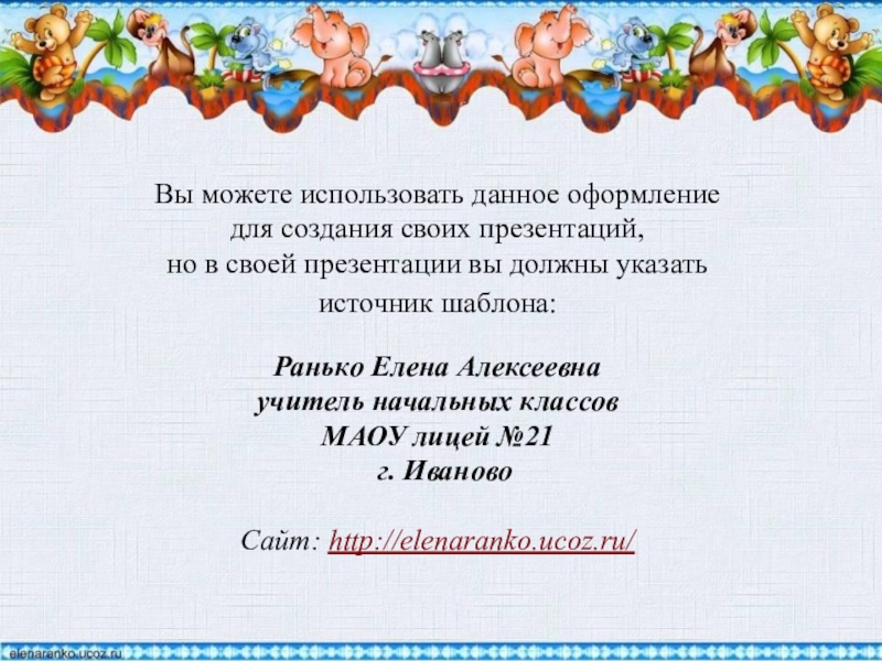Вы можете использовать данное оформление для создания своих презентаций, но в своей презентации вы должны указать источник