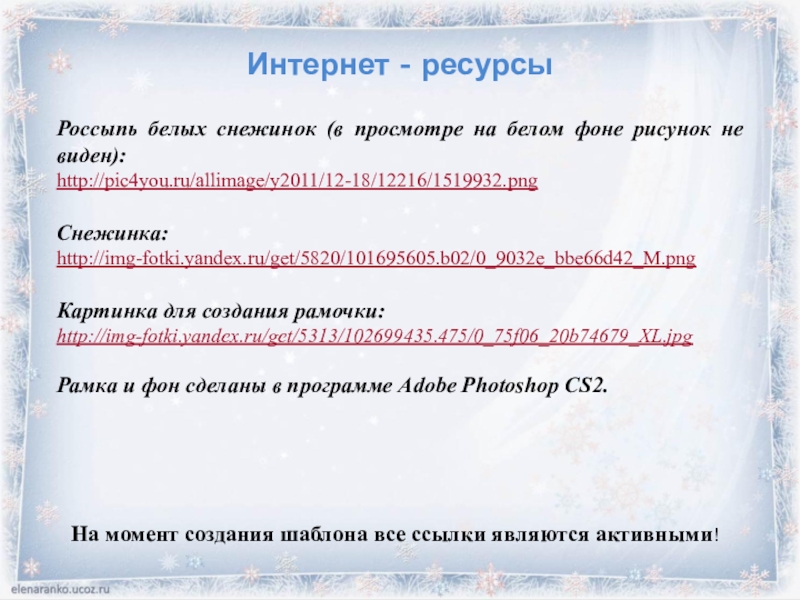 На момент создания шаблона все ссылки являются активными!