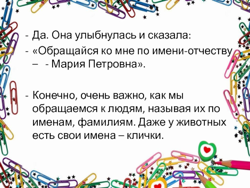 Конечно, очень важно, как мы обращаемся к людям, называя их по именам, фамилиям. Даже у животных есть свои имена – клички.