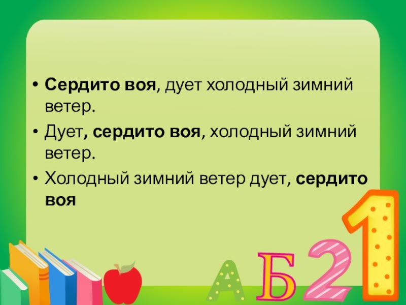 Слайд 13Сердито воя, дует холодный зимний ветер.
