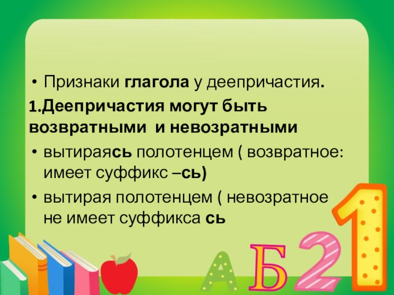 1.Деепричастия могут быть возвратными и невозратными