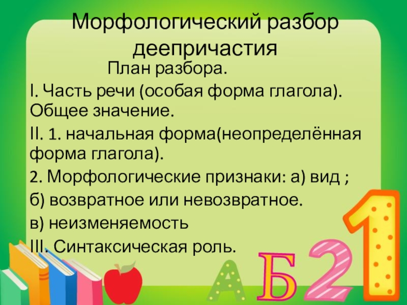 Слайд 16Морфологический разбор деепричастия