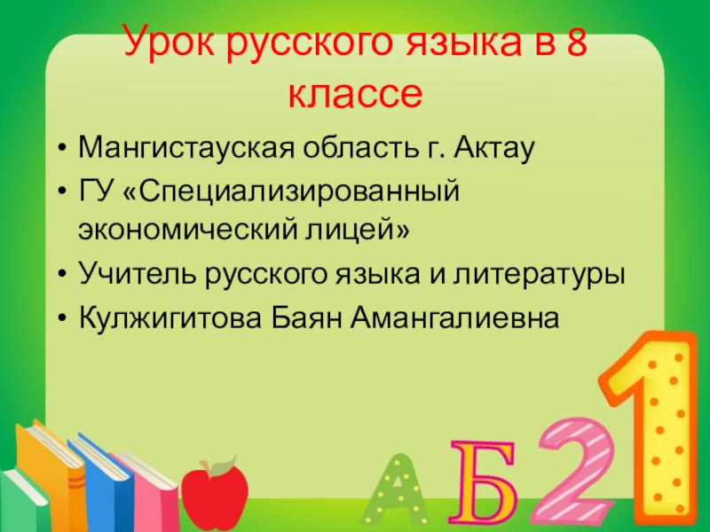 Слайд 1Урок русского языка в 8 классе