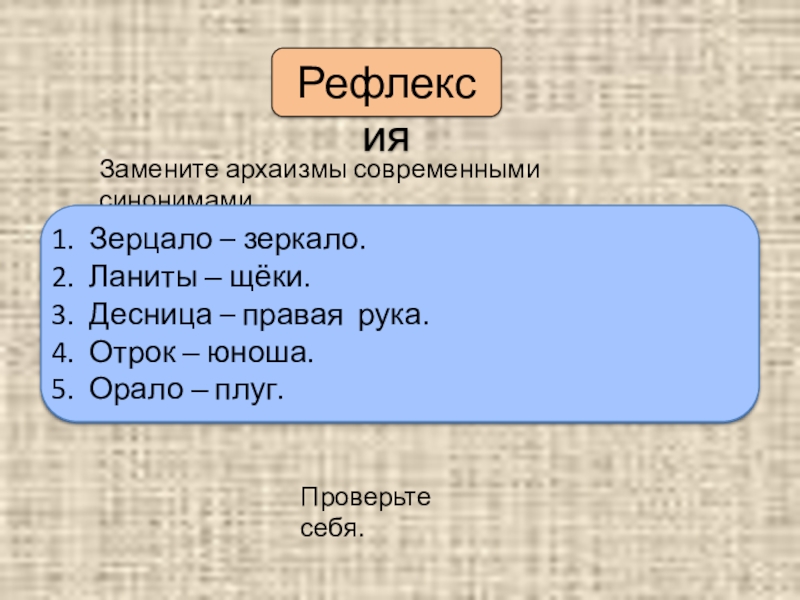 Архаизмы: