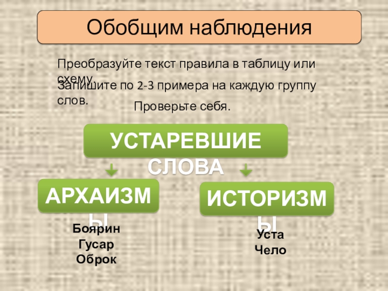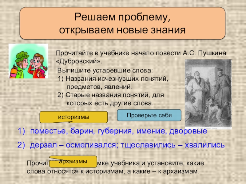 Прочитайте текст в рамке учебника и установите, какие слова относятся к историзмам, а какие – к архаизмам.