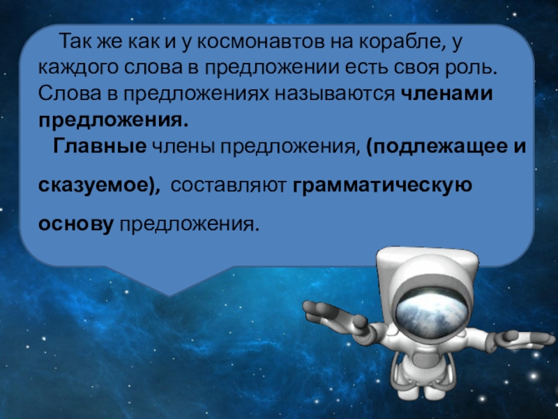 Так же как и у космонавтов на корабле, у каждого слова в предложении есть своя