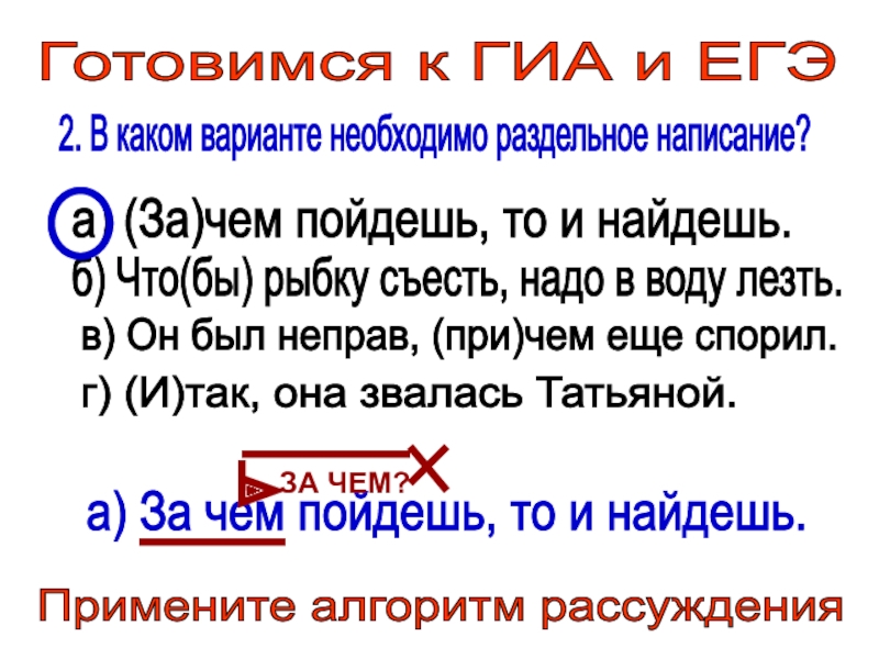 б) Что(бы) рыбку съесть, надо в воду лезть.