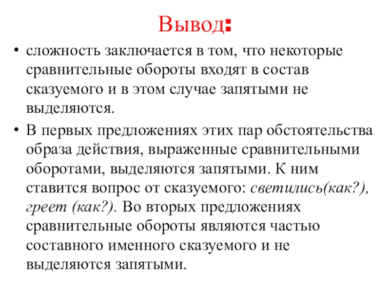 Вывод: обстоятельства, выраженные сравнительными оборотами, выделяются запятыми.
