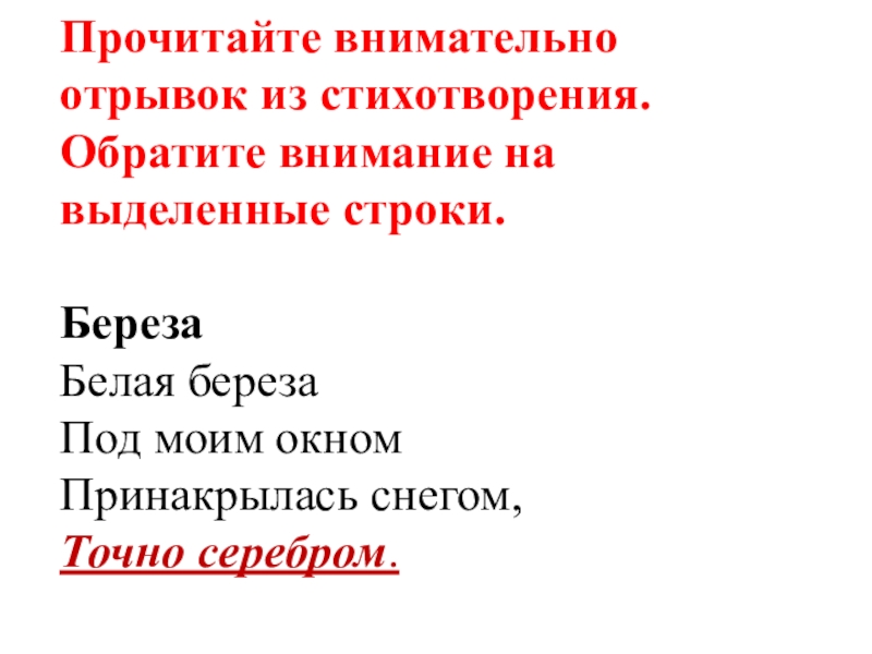 Слайд 5Прочитайте внимательно отрывок из стихотворения. Обратите внимание на выделенные строки.