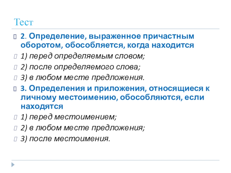2. Определение, выраженное причастным оборотом, обособляется, когда находится