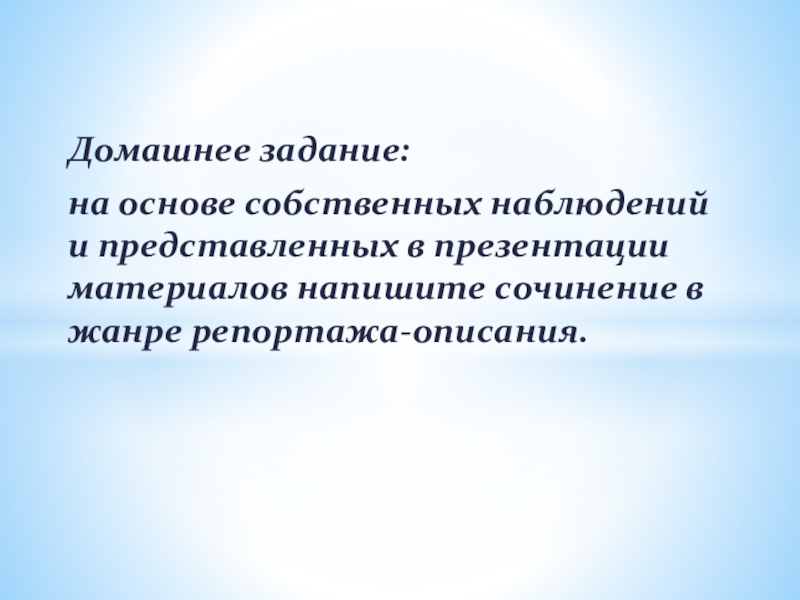 Слайд 1Презентация к уроку развития речи по теме «Репортаж-описание»
