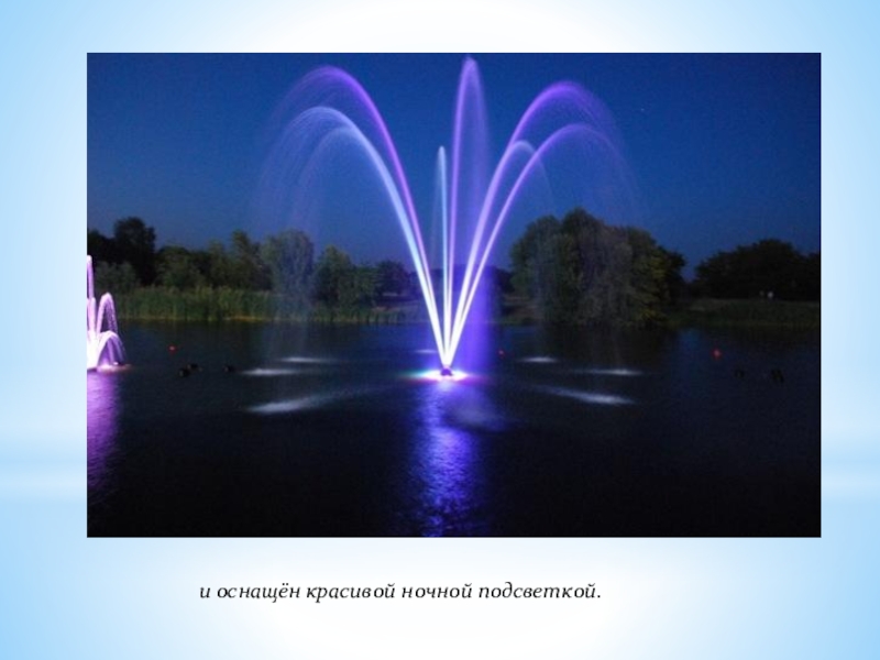 Слайд 19Украшением Набережной являются необычные фонтаны. Присмотритесь внимательно: какой лёгкий, нежный, невесомый…