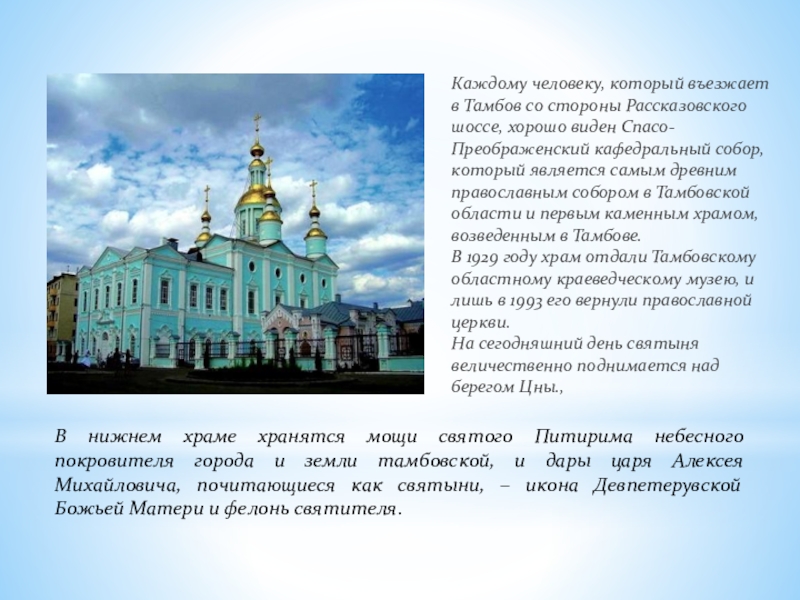 Слайд 9Тамбовский храм Казанской иконы Божией Матери начали возводить в 1791 году.