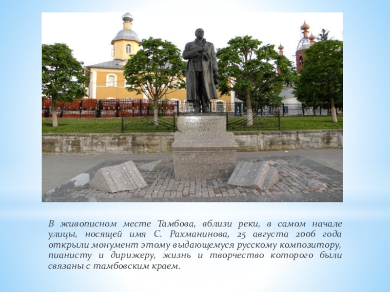 имя С. Рахманинова, 25 августа 2006 года открыли монумент этому выдающемуся русскому композитору, пианисту и дирижеру, жизнь и творчество которого были связаны с тамбовским краем.