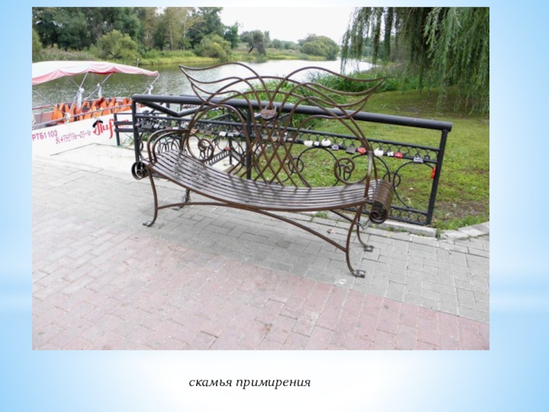 Слайд 15А это «Мост влюблённых», куда приходят молодожёны, чтобы скрепить свой союз,
